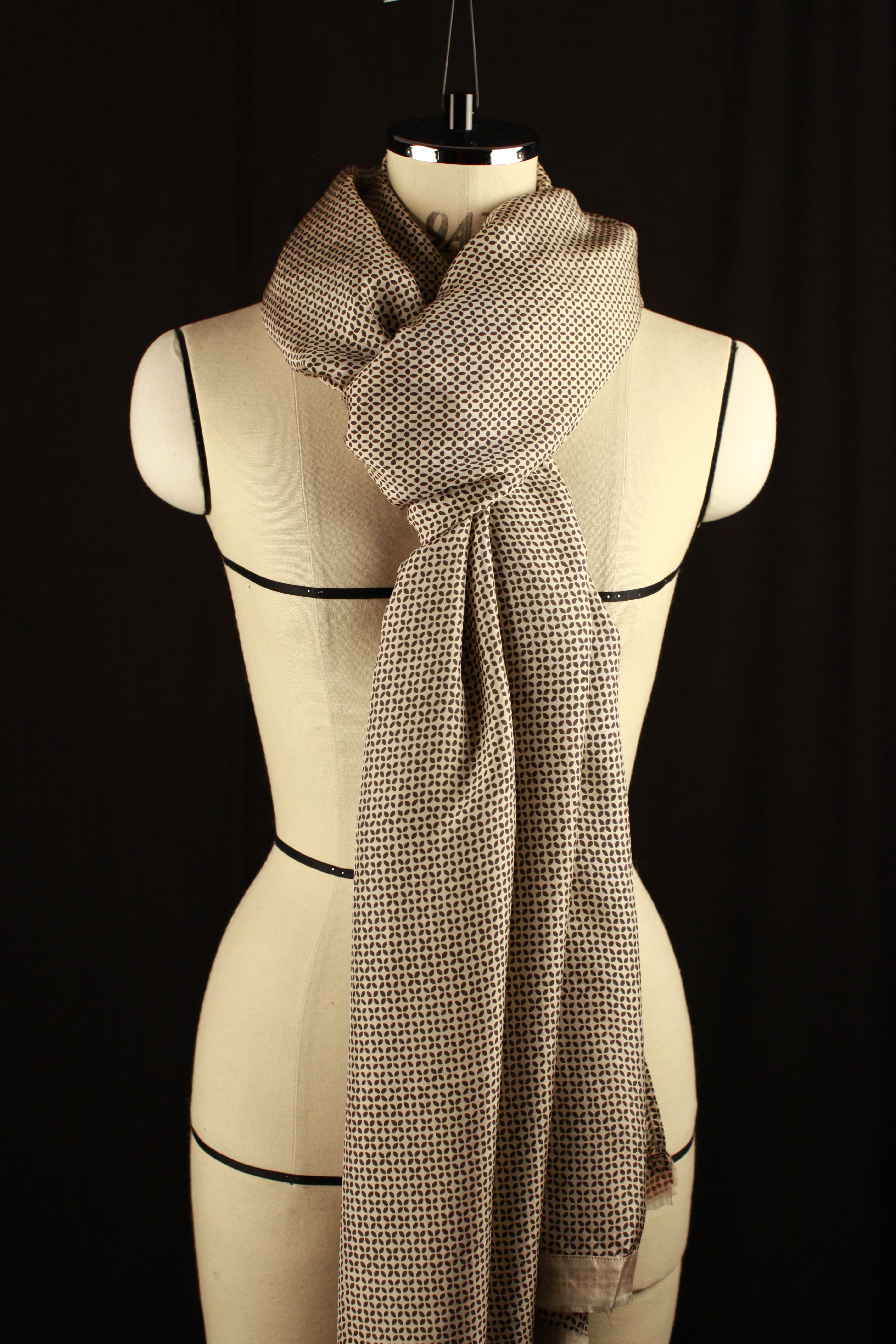 A simple uncluttered, hand block print on supple, buttery Tabby Silk.