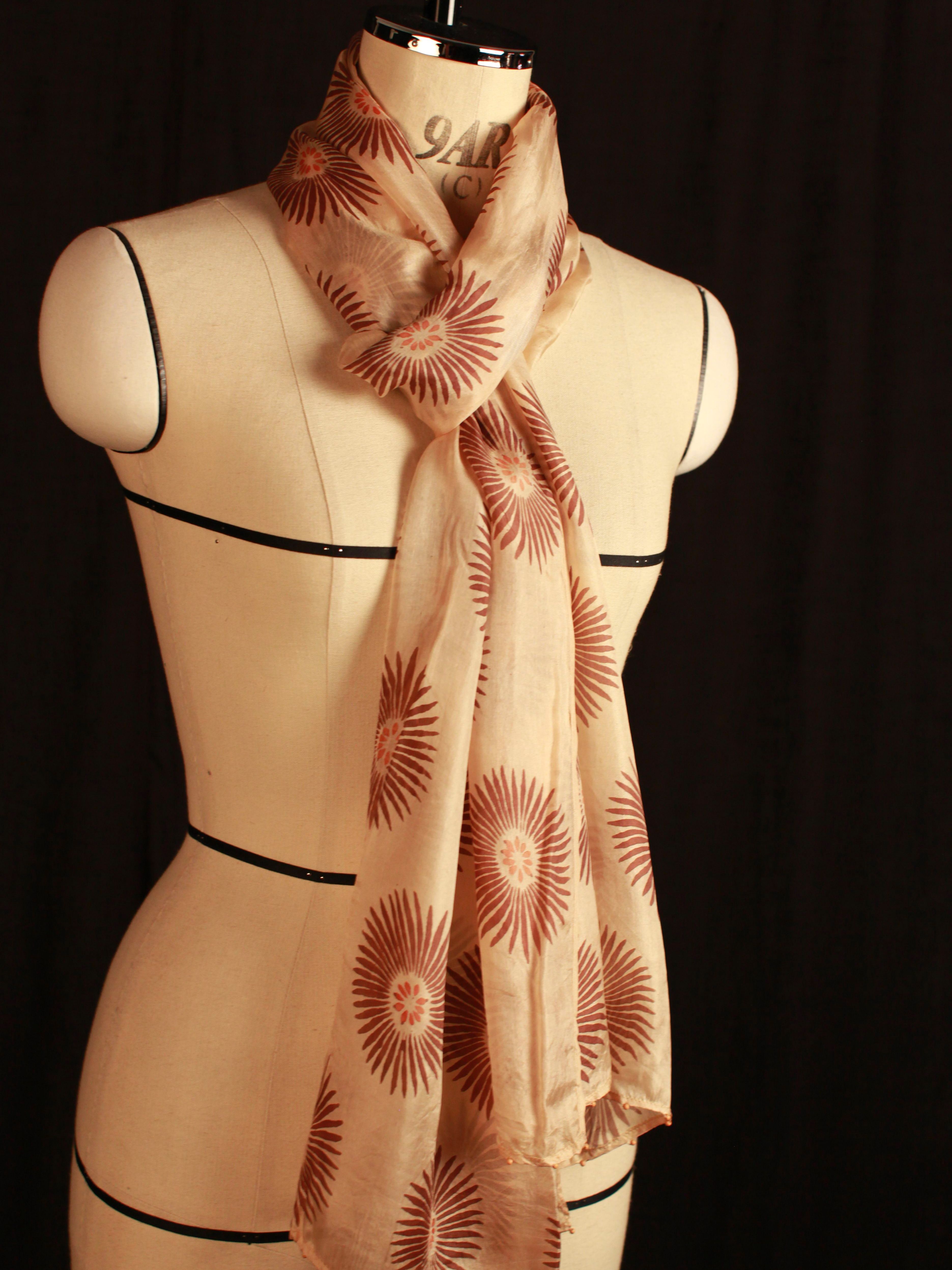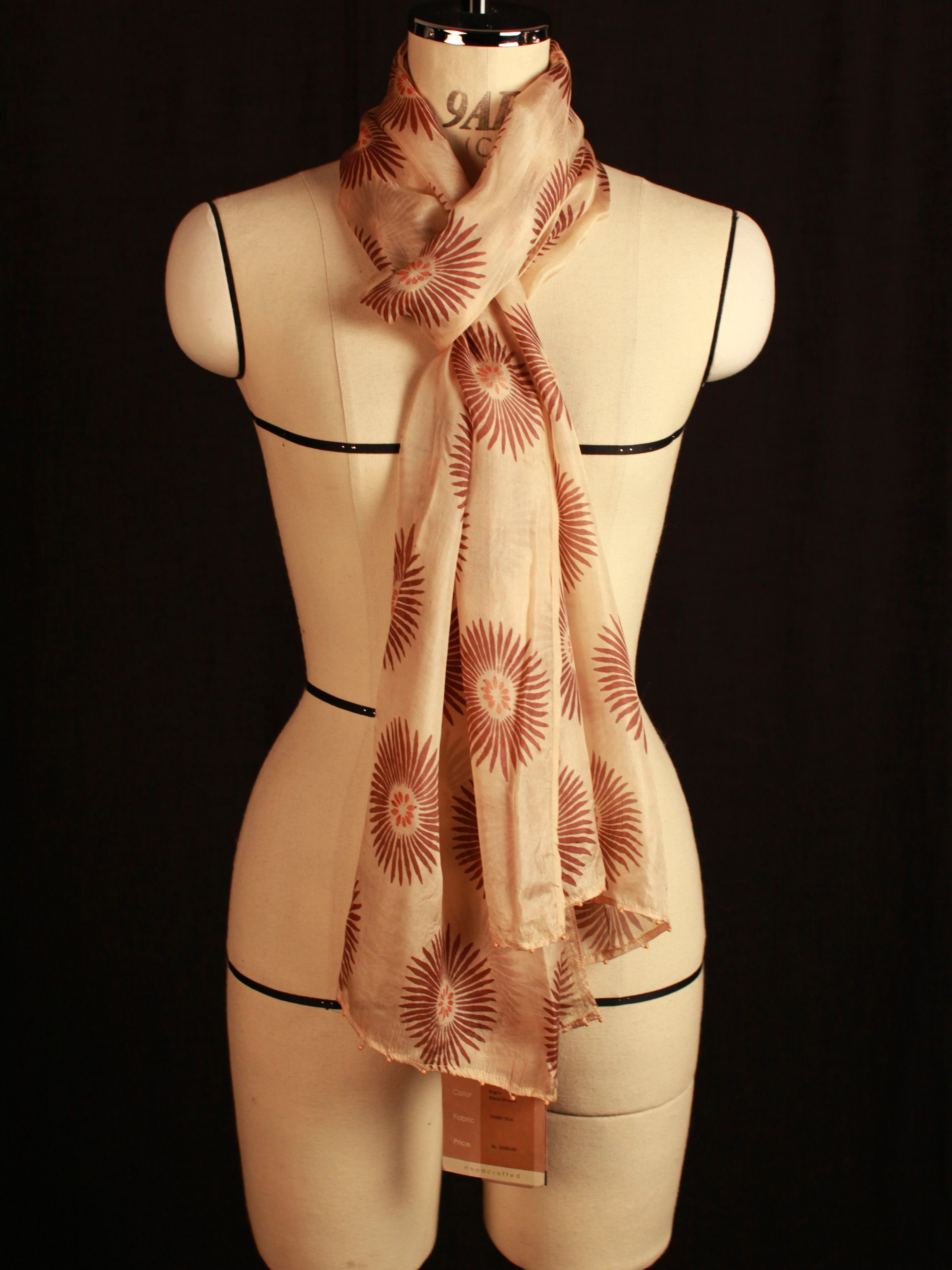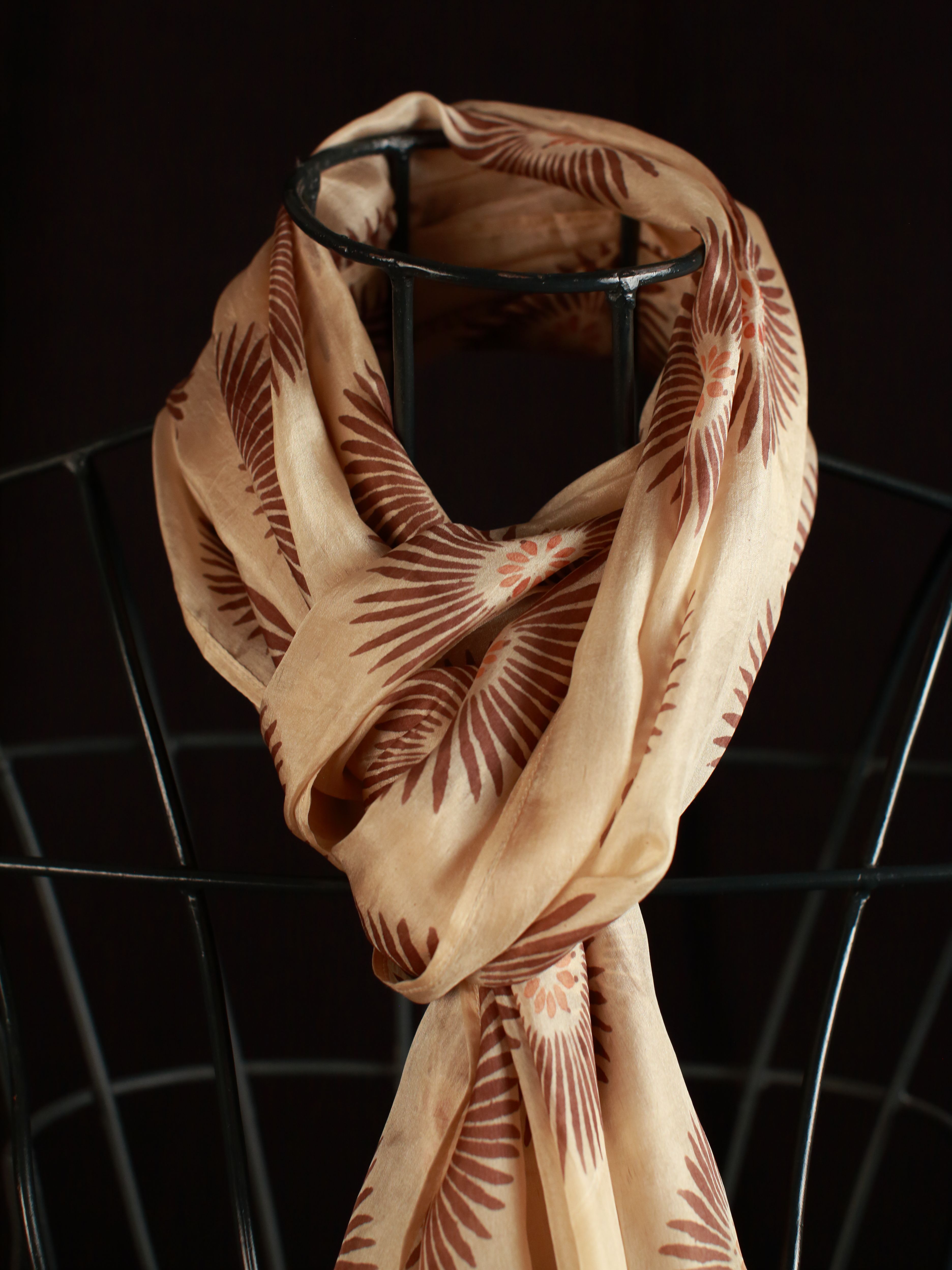 This Stole has been printed using Hand Blocks and with Natural Dyes and in many cases on Hand Woven Silk.  Imperfections in printing and weaving are inherent and usually cannot be avoided - in fact, these imperfections impart a unique character and mystique to each piece.