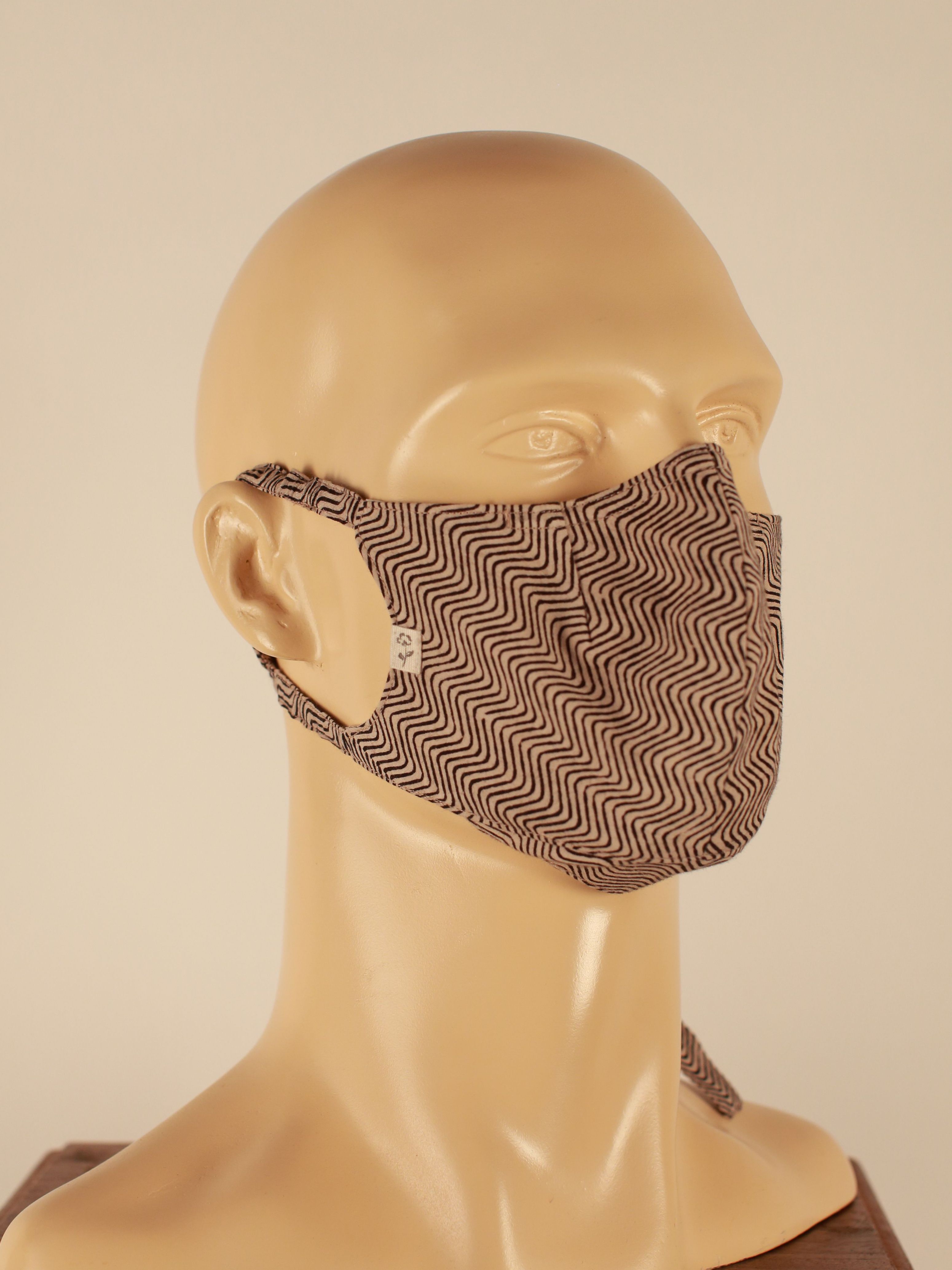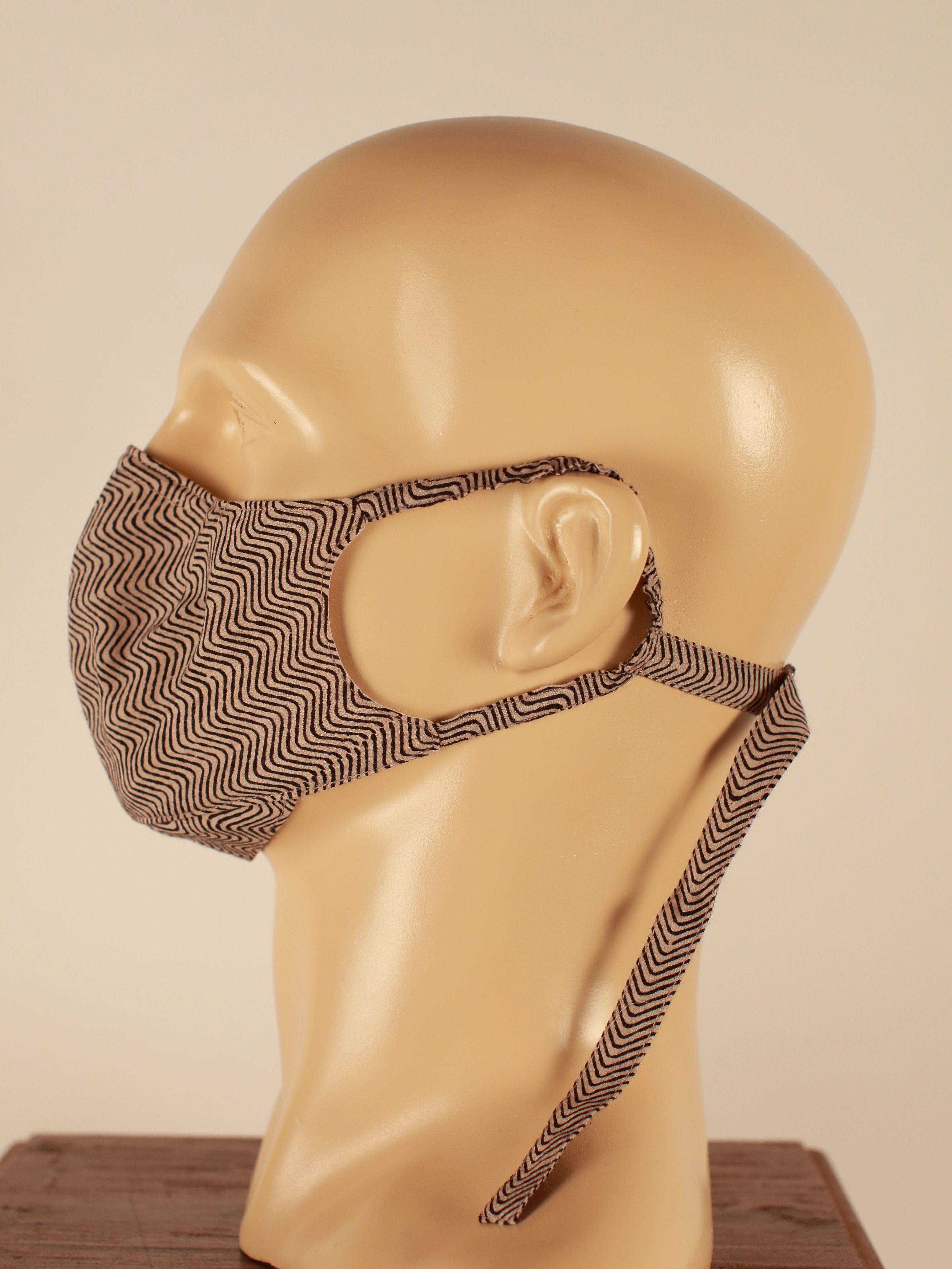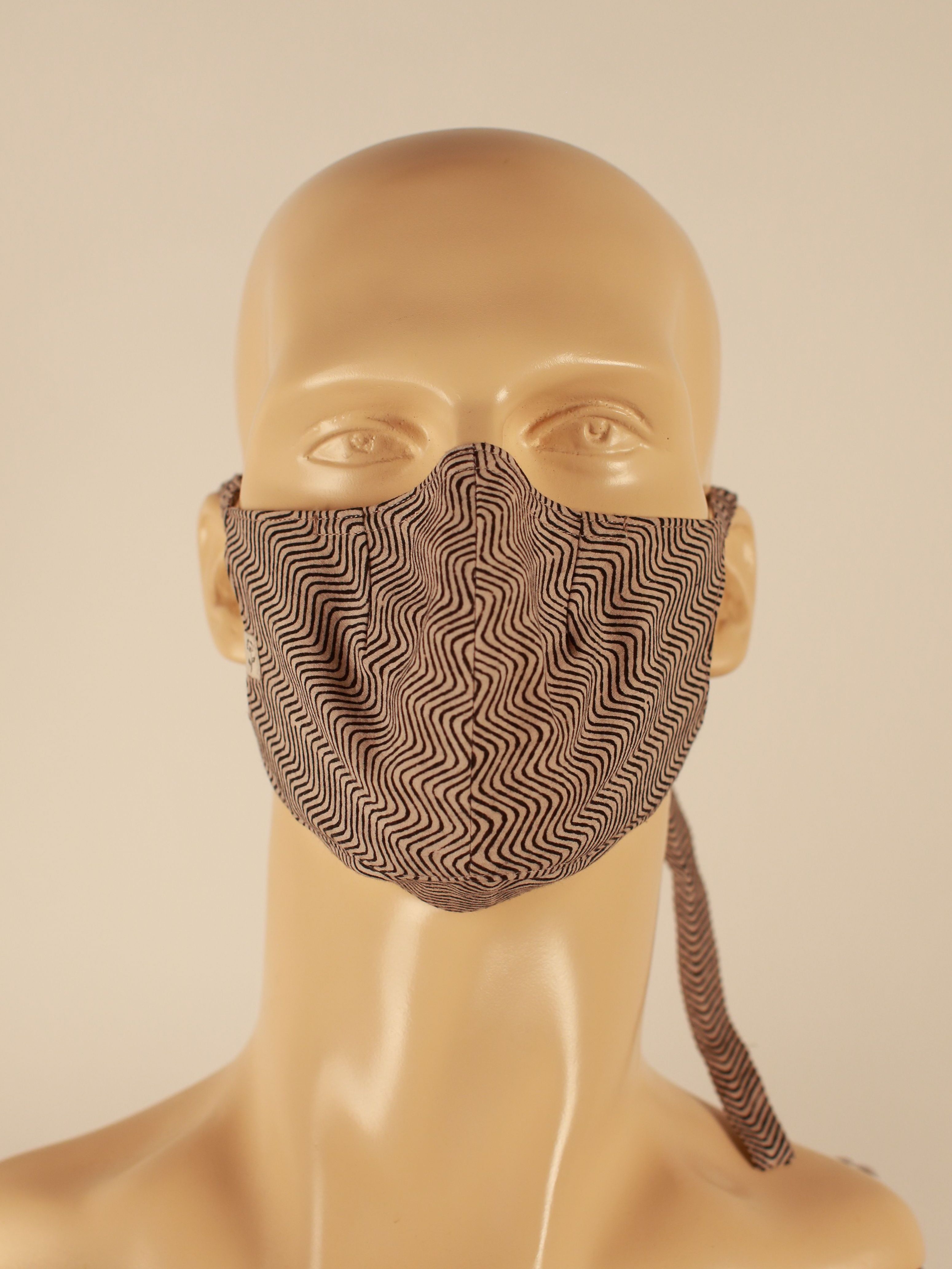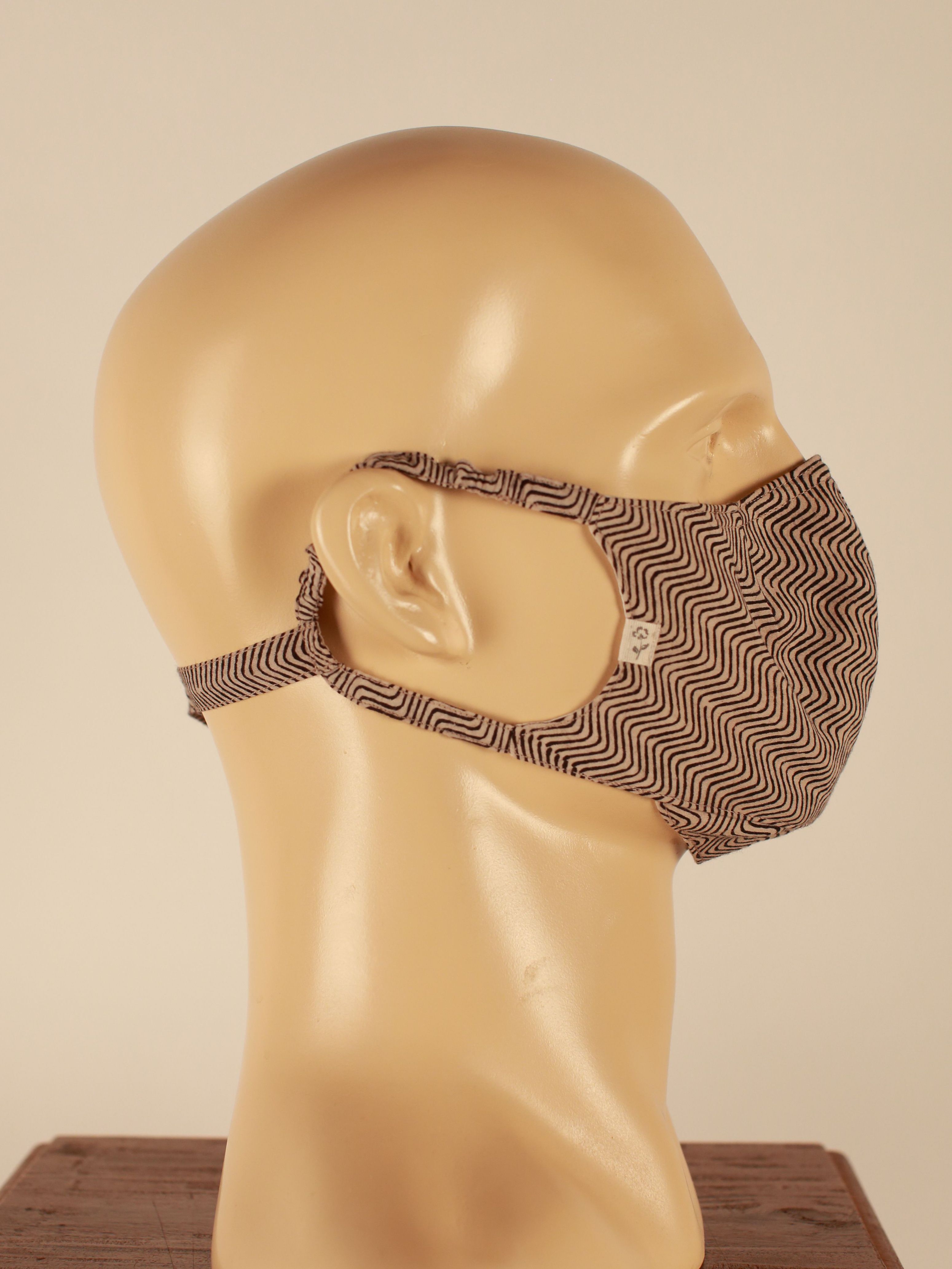 This mask uses a Chevron motif hand block print with Mineral Dyes along with our signature construction with a stronger, wider and padded nose strip for better contouring around the nose bridge to ensure that you breathe through the fabric and keep yourself and those around you safe.